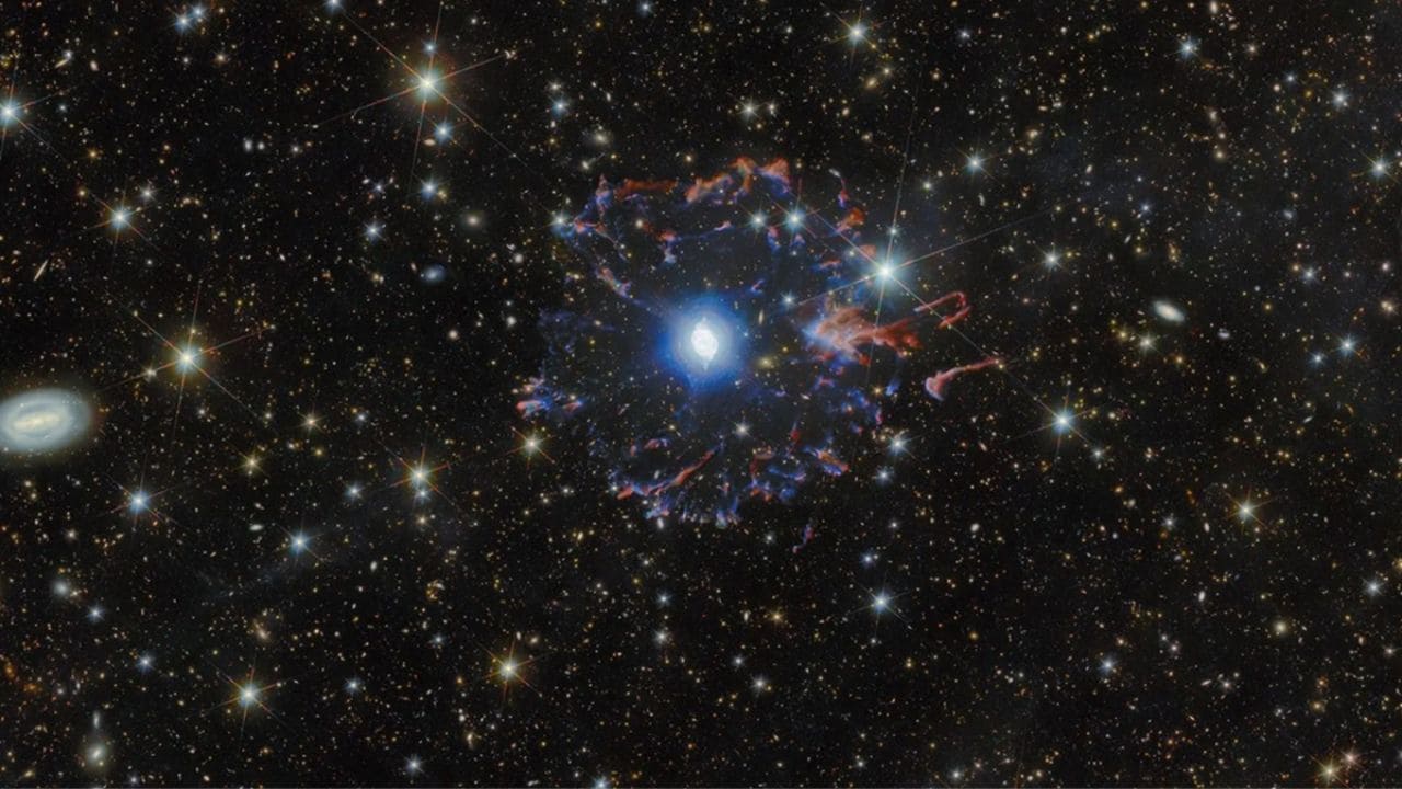 విశ్వం అంచులని అన్వేషించే క్రమంలో నాసాకు చెందిన హబుల్ స్పేస్ టెలిస్కోప్, ఈఎస్ఏకు చెందిన యూక్లిడ్ స్పేస్ టెలిస్కోప్ కలిసి ఒక అద్భుతమైన దృశ్యాన్ని మన ముందుకు తీసుకువచ్చాయి. డ్రాకో నక్షత్ర మండలంలో, భూమికి సుమారు 4,300 నుండి 4,400 కాంతి సంవత్సరాల దూరంలో ఉన్న 'క్యాట్స్ ఐ నెబ్యులా'ను ఈ రెండు శక్తివంతమైన టెలిస్కోపులు సంయుక్తంగా బంధించాయి. చనిపోతున్న ఒక నక్షత్రం నుండి వెలువడిన వాయువుల పొరలు ఎంత సంక్లిష్టంగా, ఎంత అందంగా ఉంటాయో ఈ కొత్త చిత్రం మనకు స్పష్టం చేస్తోంది. ఒకప్పుడు నక్షత్రం నుండి విరజిమ్మబడిన పదార్థం రంగురంగుల వలయాలుగా ఏర్పడటం, దాని వెనుక అపారమైన గెలాక్సీల నేపథ్యం చూడటానికి రెండు కళ్లు సరిపోవు అన్నట్లుగా ఉంది. అంతరిక్ష పరిశోధనల్లో ఇదొక సరికొత్త మైలురాయిగా నిలుస్తుందనడంలో సందేహం లేదు.
